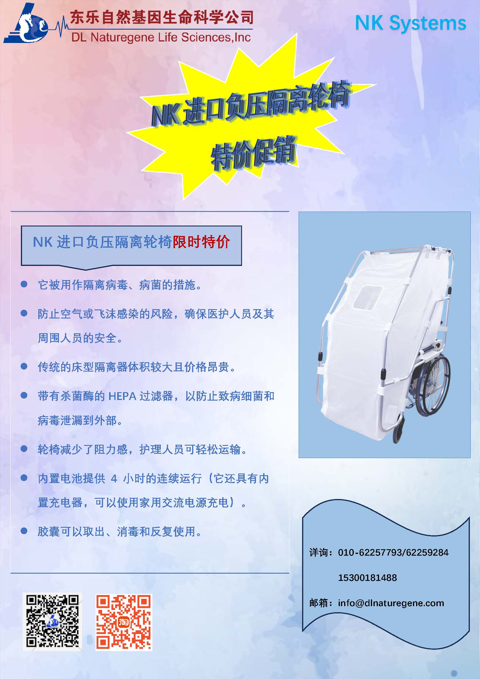 NK进口负压隔离轮椅限时特价促销!