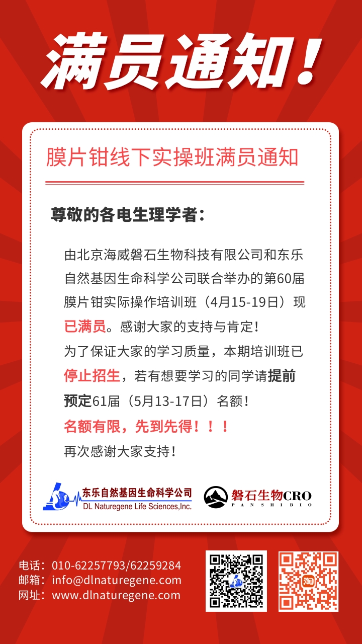 膜片钳线下实操班满员通知