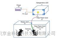 for Freely Moving Mammals)。包括单波长或多波长的LED光源,转向器(Rotary Joint),光纤跳线,光纤探针(mplantable Cannulae),陶瓷套管(Mating Sleeve)等部分。