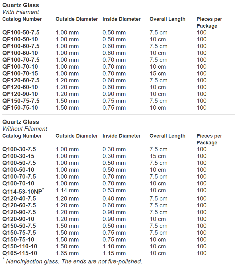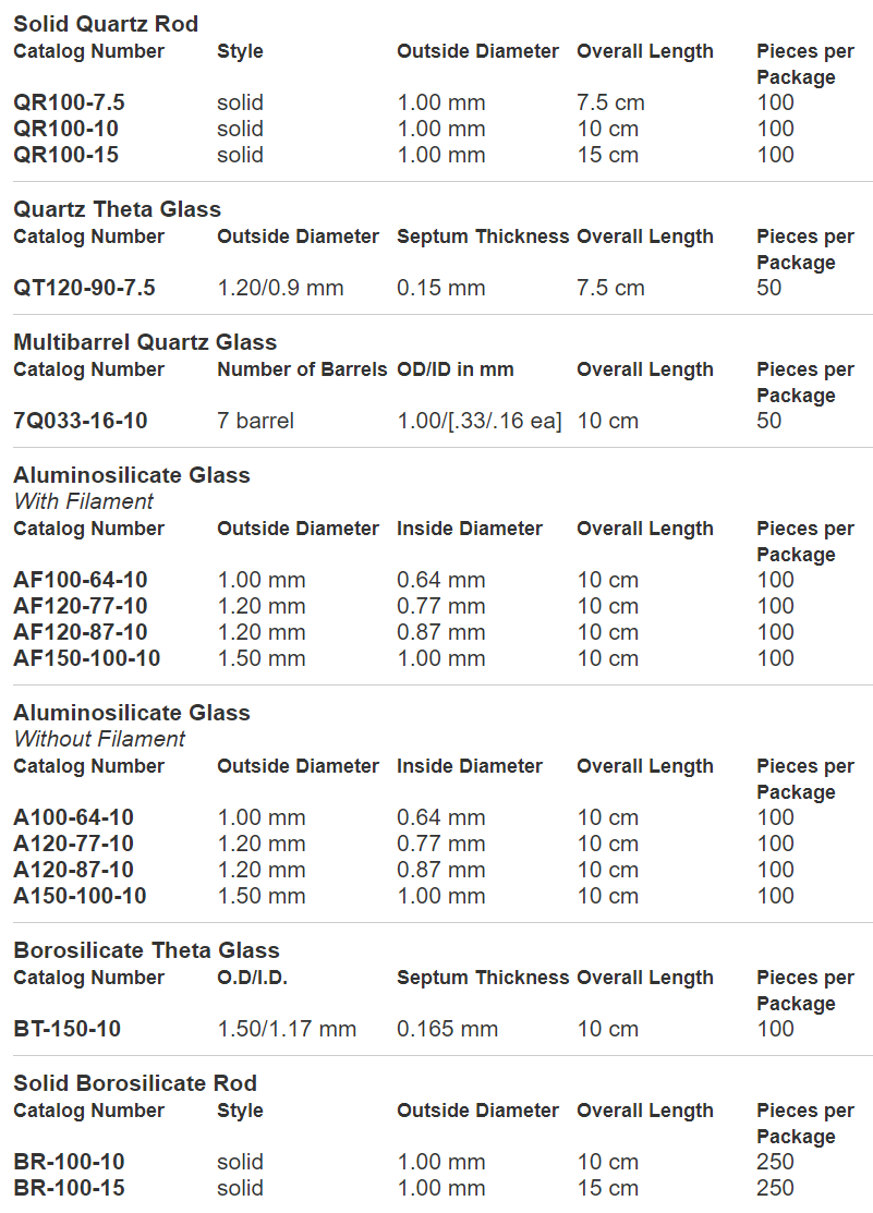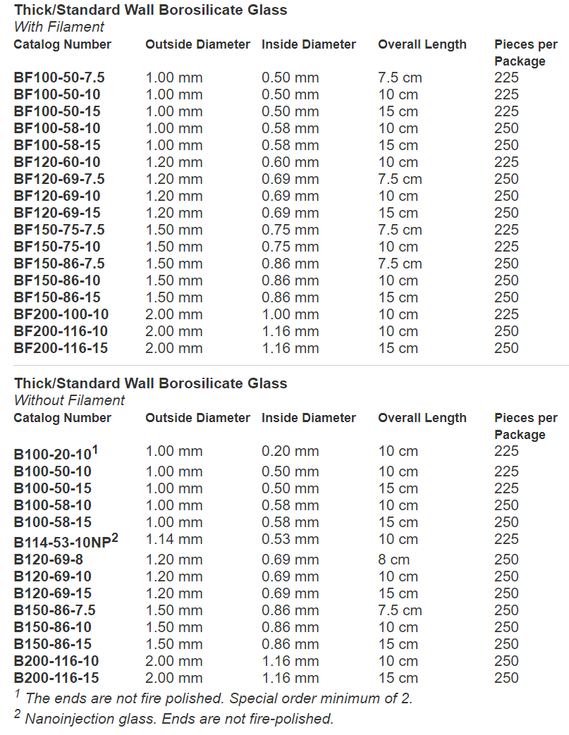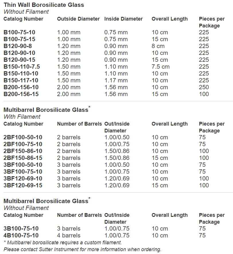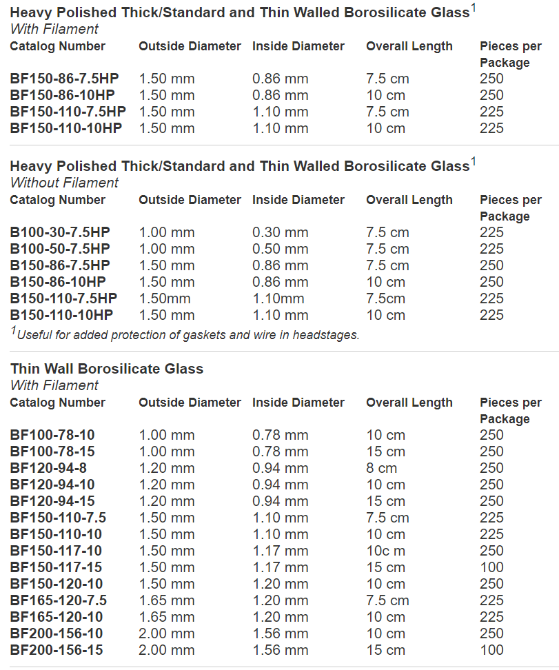 各种材质及尺寸的sutter玻璃电极:
