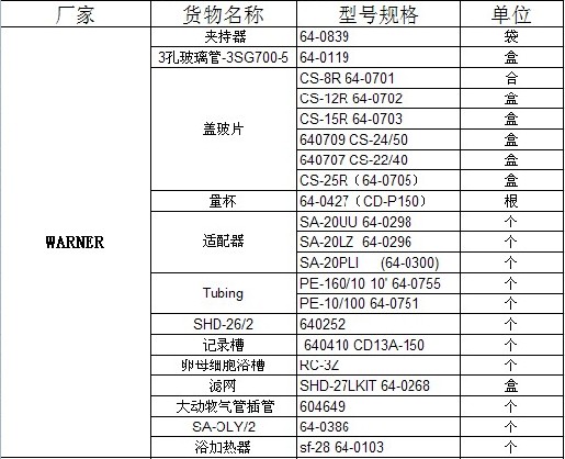 Warner耗材现货